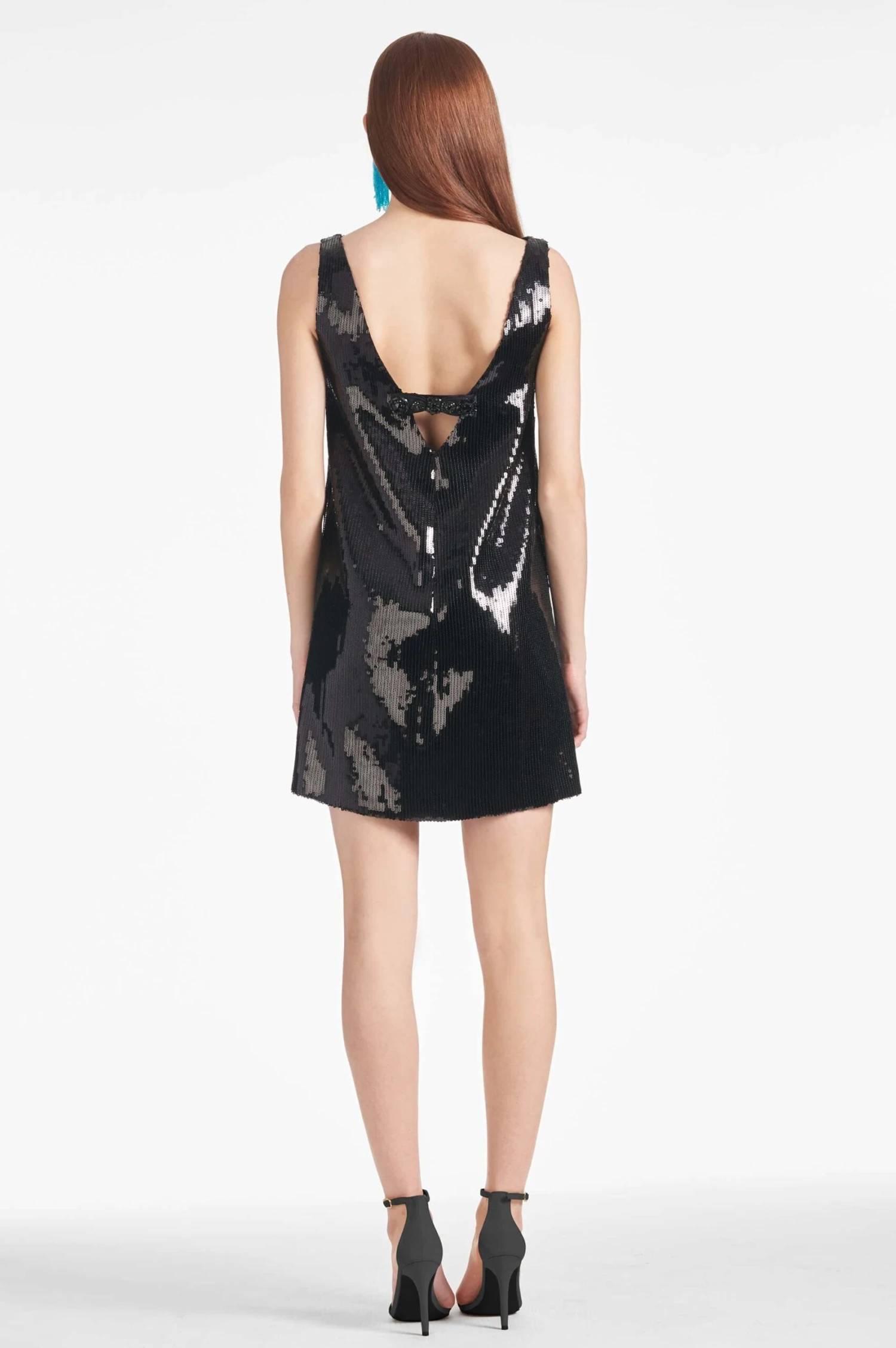 Look stylish no matter what the occasion in the Addy Dress. Offering a chic bateau neck in the chic shift dress shape. Liquid sequines make this dress more than just an LBD. This silhouette is timeless and will be your “go-to” cocktail shape for years to come.
