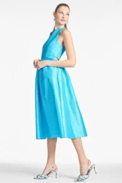 The stunning Alicia Dress boasts a bold electric blue hue and a sleek midi silhouette. Crafted from a silk weave fabric, the dress features a fitted bodice and an A-line skirt, creating a timelessly elegant look. A wardrobe staple, this exquisite piece is one you’ll wear on rotation.