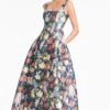 The Aubrey gown in amethyst is an example of balance by design. A sleek sleeve of charmeuse cut on the bias with an asymmetric seam at the waist creates a column for curves. At the shoulder sits a hand tucked collapsed bow adorned with hand-embroidered silver caviar beading at the knot.