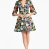 Audra is elegant and of another time, this ballerina style dress reminds of us pink champagne and pearls. In an understated, yet sophisticated faille, the tea-length dress with soft box pleating is adorned with a floral embroidery.