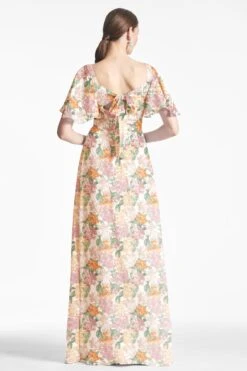 The Aurora Gown is the perfect choice for your bridesmaids to look and feel their best on your big day. The flattering silhouette and flutter sleeves give them a classic, timeless look.Â