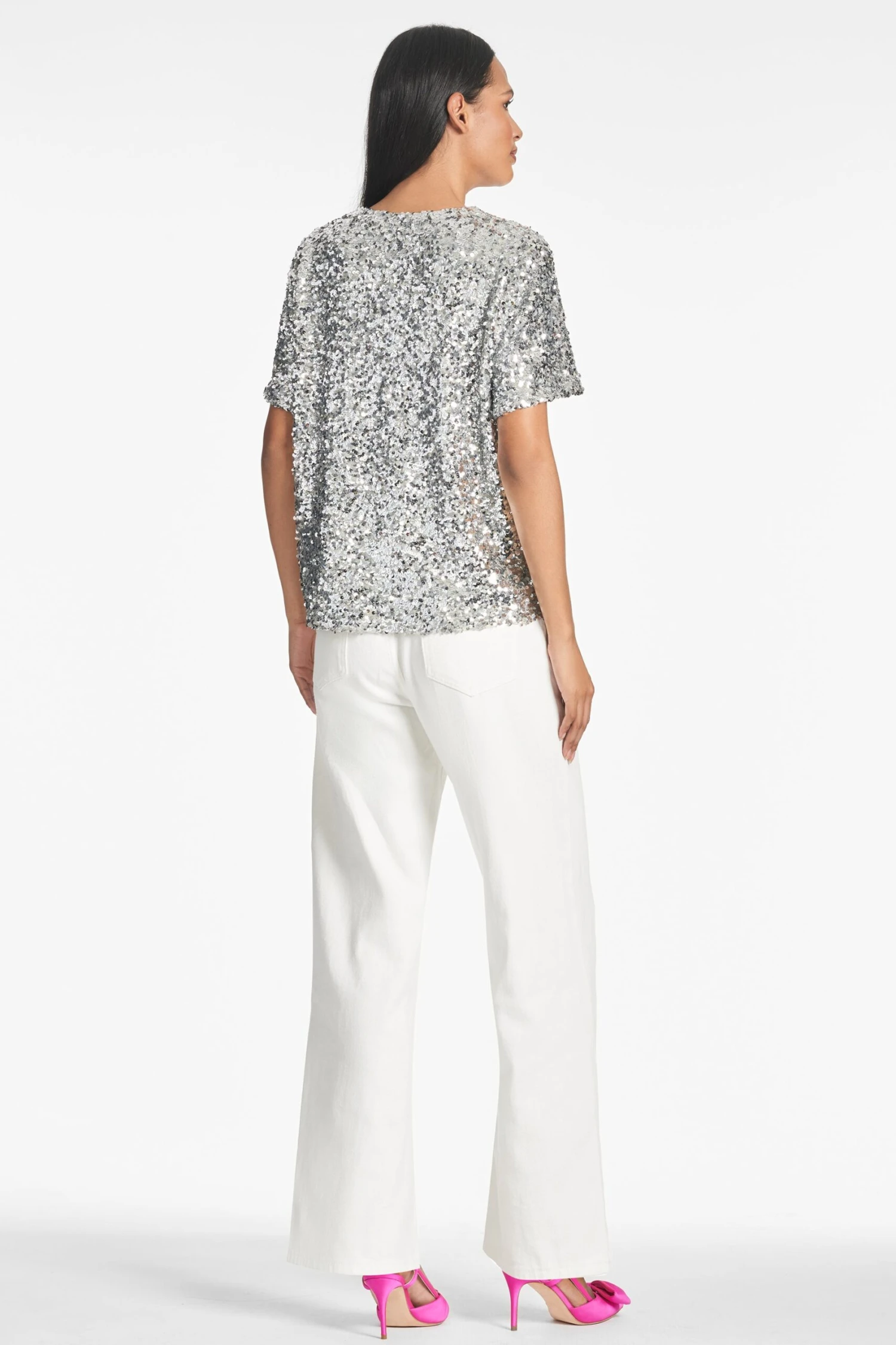 Bette is the perennial party top that every closet needs. Featuring a boxier silhouette of scatter sequins that drape beautifully on the body, she’s as versatile as she is fun. Pair this back to the Leighton skirt for a formal festive look, or throw on some blue jeans to add some sparkle to an otherwise casual ensemble.