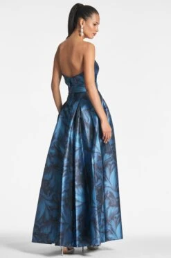 The Brielle gown is a vision in our uniquely romantic tonal petal print. The otherwise classic strapless silhouette has a specially designed envelope fold to add a bit of architectural interest.