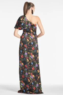 The Chelsea gown in our Noir Wildflower print is an example of balance by design. A sleek sleeve of crinkle georgette is cut on the bias with an asymmetric seam at the waist, creating a column for curves. At the shoulder sits a hand-tucked, stitched-on collapsed bow. We design all of our Essential Social dresses with the intention that they can be enjoyed again and again. After all, a beautiful dress should be worn often and well.
