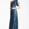 The Gwen gown is a classically elegant ballerina silhouette in lilac, with slash pockets and concealed closure. Dressed with two striking crystal broaches at either strap.