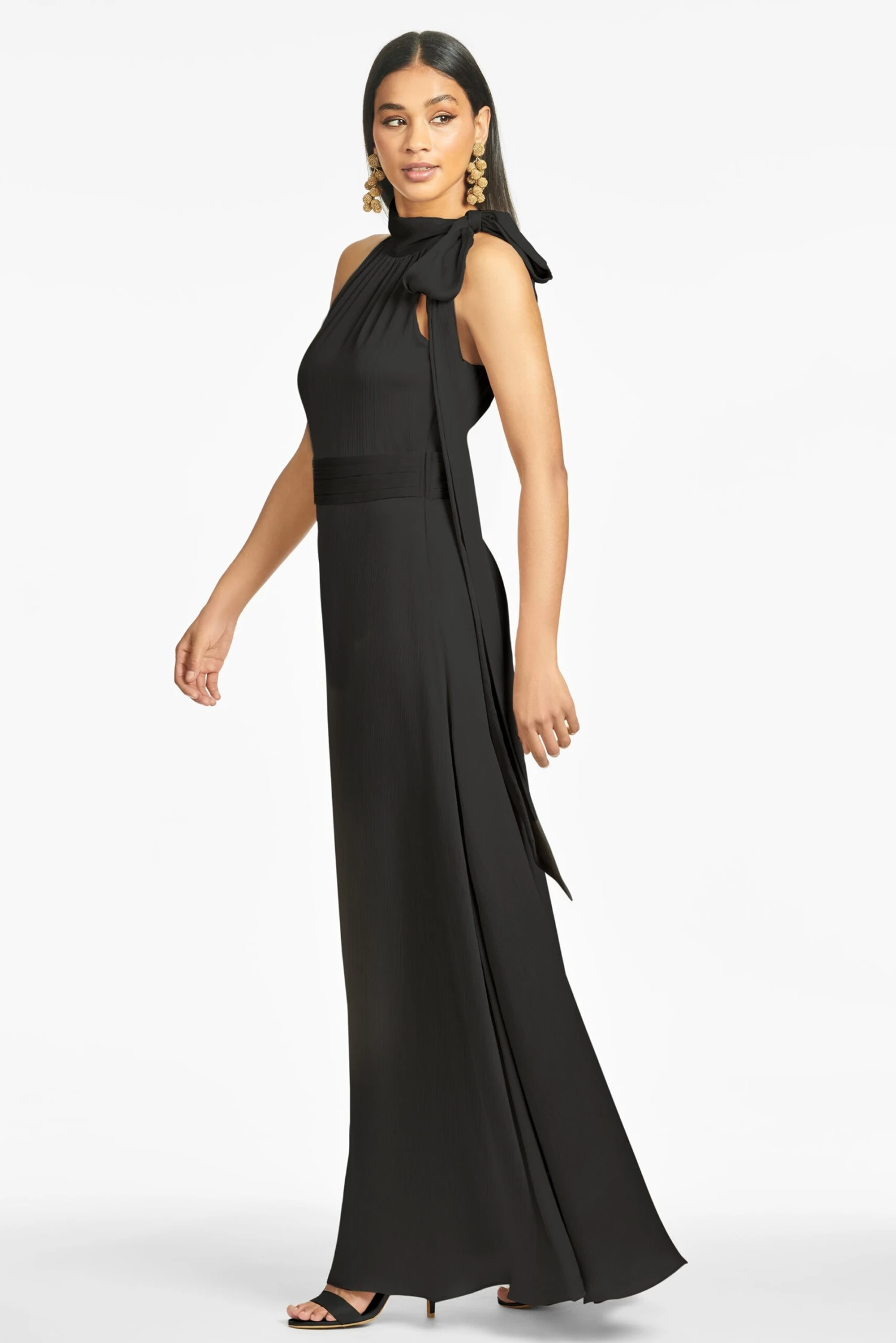 Kayla, simple yet romantic, is an elegant maxi dress with a self-tie at the neckline. The stitched-on pleated waistband hits at the true waist for the most flattering shape. We design all of our dresses in the Essential Social collection with the intention that they can be enjoyed again and again. A timeless dress should be worn often and well.