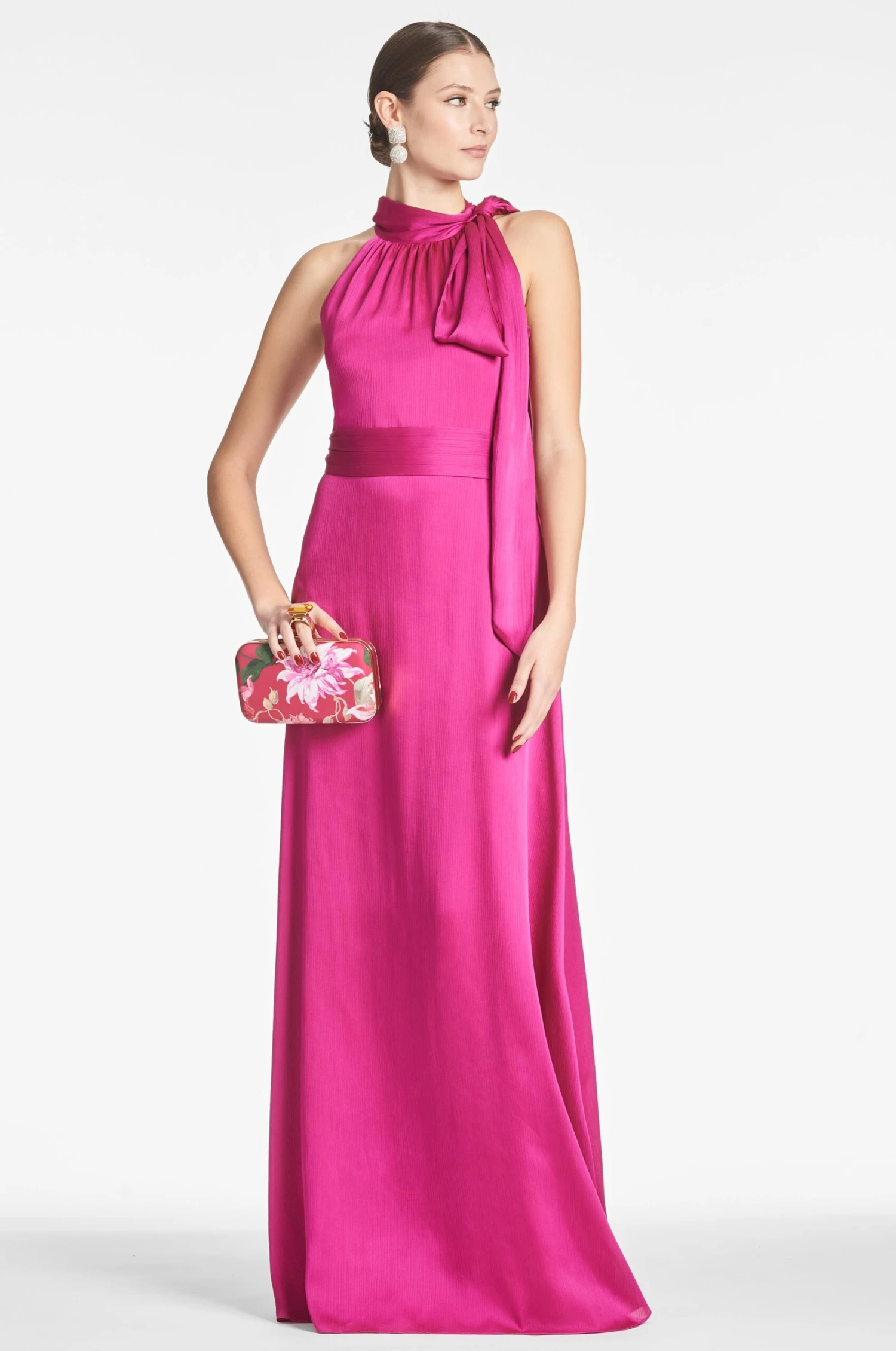 Kayla in Dragonfruit is simple yet romantic. She’s an elegant maxi dress with a self-tie at the neckline and a stitched-on pleated waistband that hits at the true waist for the most flattering shape. We design all of our dresses in the Essential Social collection with the intention that they can be enjoyed again and again. A timeless dress should be worn often and well.