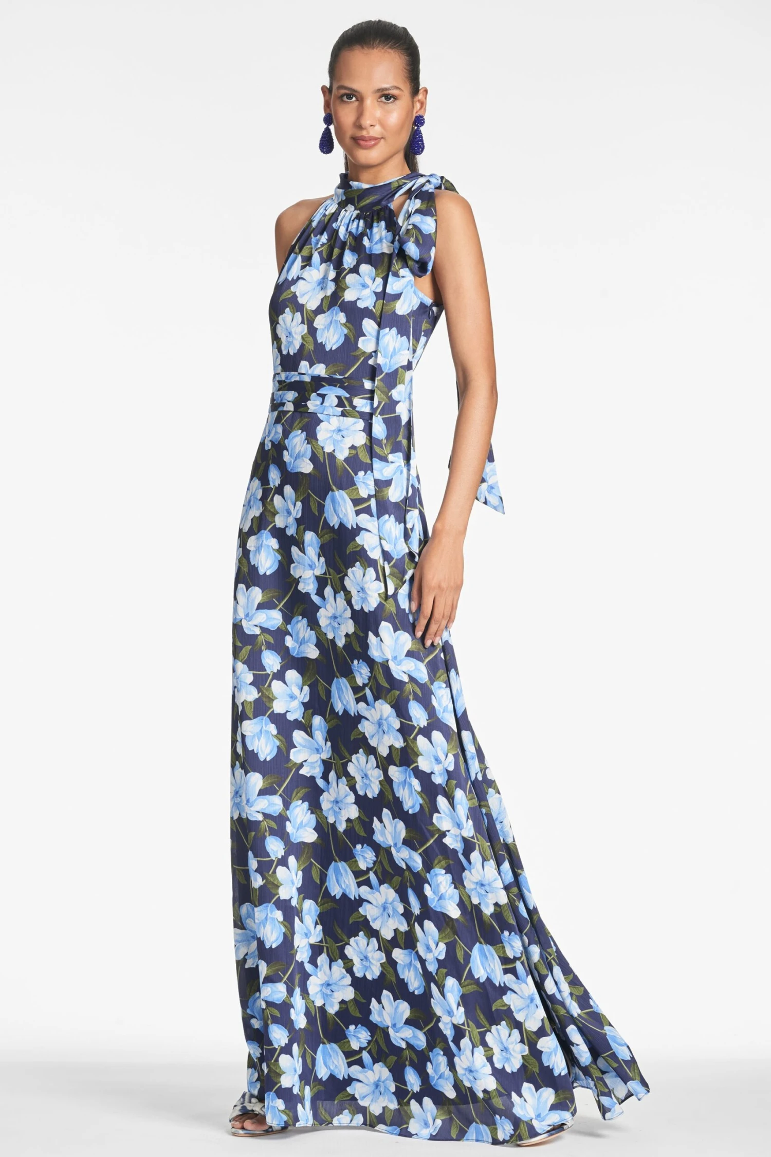 Kayla in Ocean Blue Magnolia is simple yet romantic. She’s an elegant maxi dress with a self-tie at the neckline and a stitched-on pleated waistband that hits at the true waist for the most flattering shape. We design all of our dresses in the Essential Social collection with the intention that they can be enjoyed again and again. A timeless dress should be worn often and well.