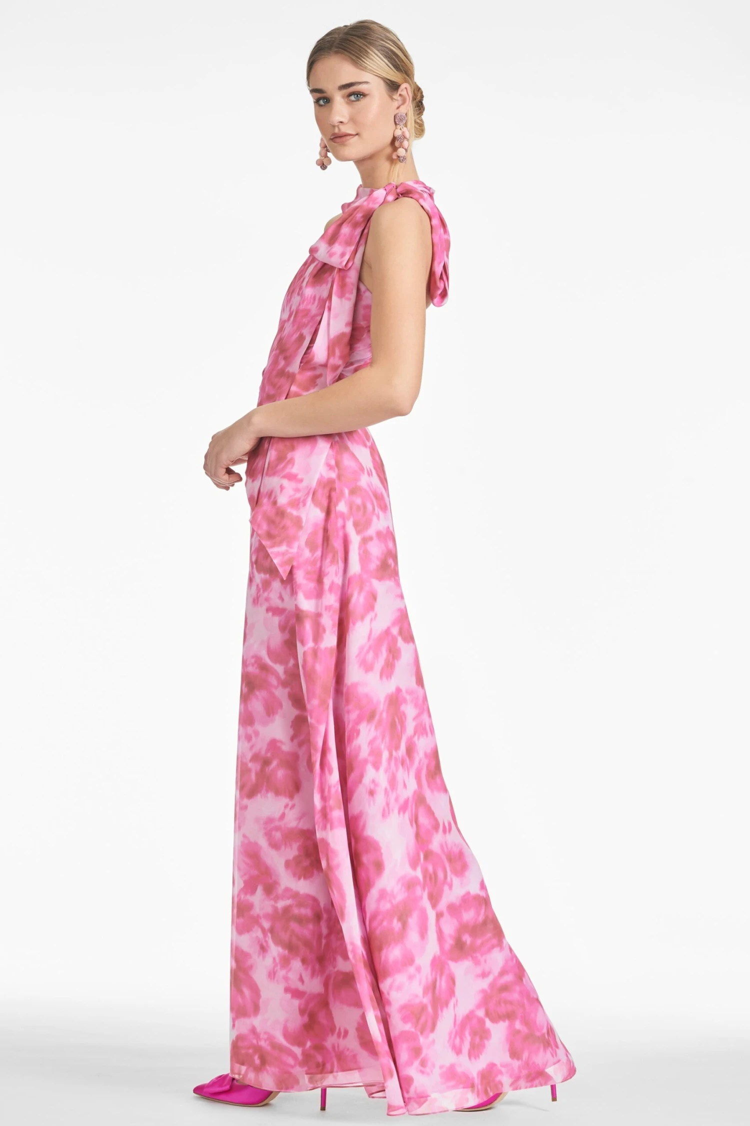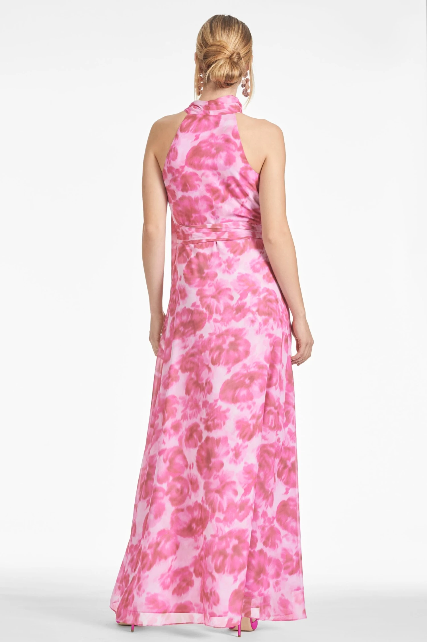 Kayla in Pink Fantasia Bloom is simple yet romantic. She’s an elegant maxi dress with a self-tie at the neckline and a stitched-on pleated waistband that hits at the true waist for the most flattering shape. We design all of our dresses in the Essential Social collection with the intention that they can be enjoyed again and again. A timeless dress should be worn often and well.