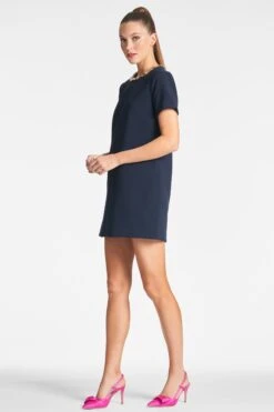 The Lauren Dress in dark midnight is a must have item this season. Crafted from thick stretch crepe, this mini dress features short sleeves and elegant embellishments along the neckline for an eye-catching effect that will make you stand out from the crowd.