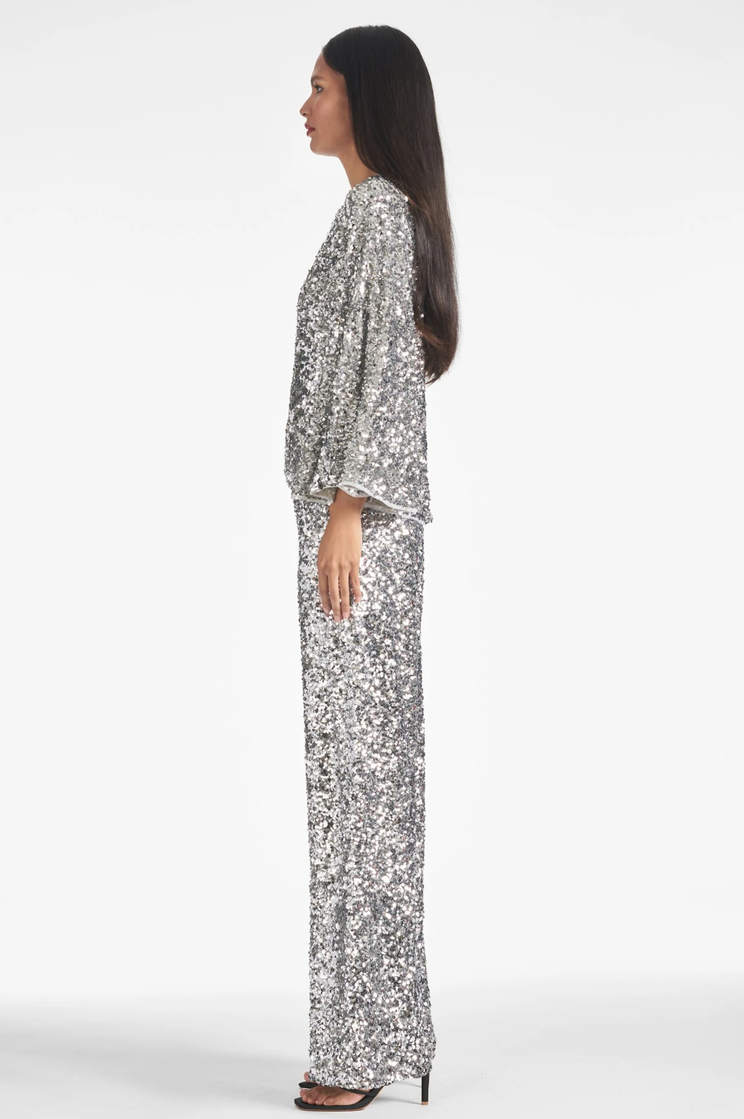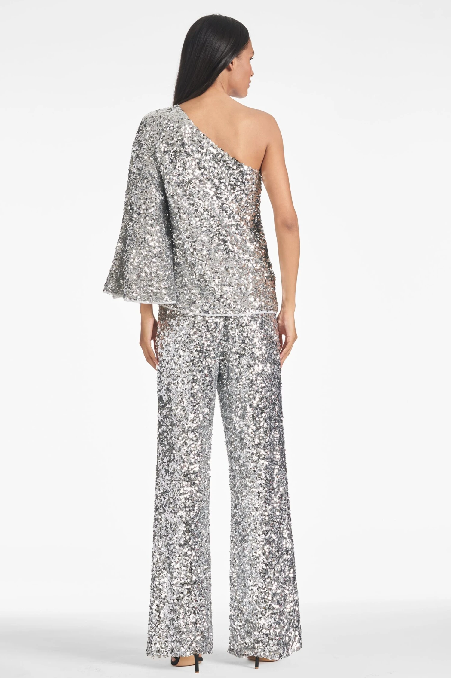The Morgan Top is a stylish evening wear piece that will be sure to impress at any special occasion. This one shoulder top features a modern silhouette that is sure to turn heads and easily elevate your look. Fashion-forward and elegant, this stylish party top is sure to make you the center of attention sparkling in silver sequins.