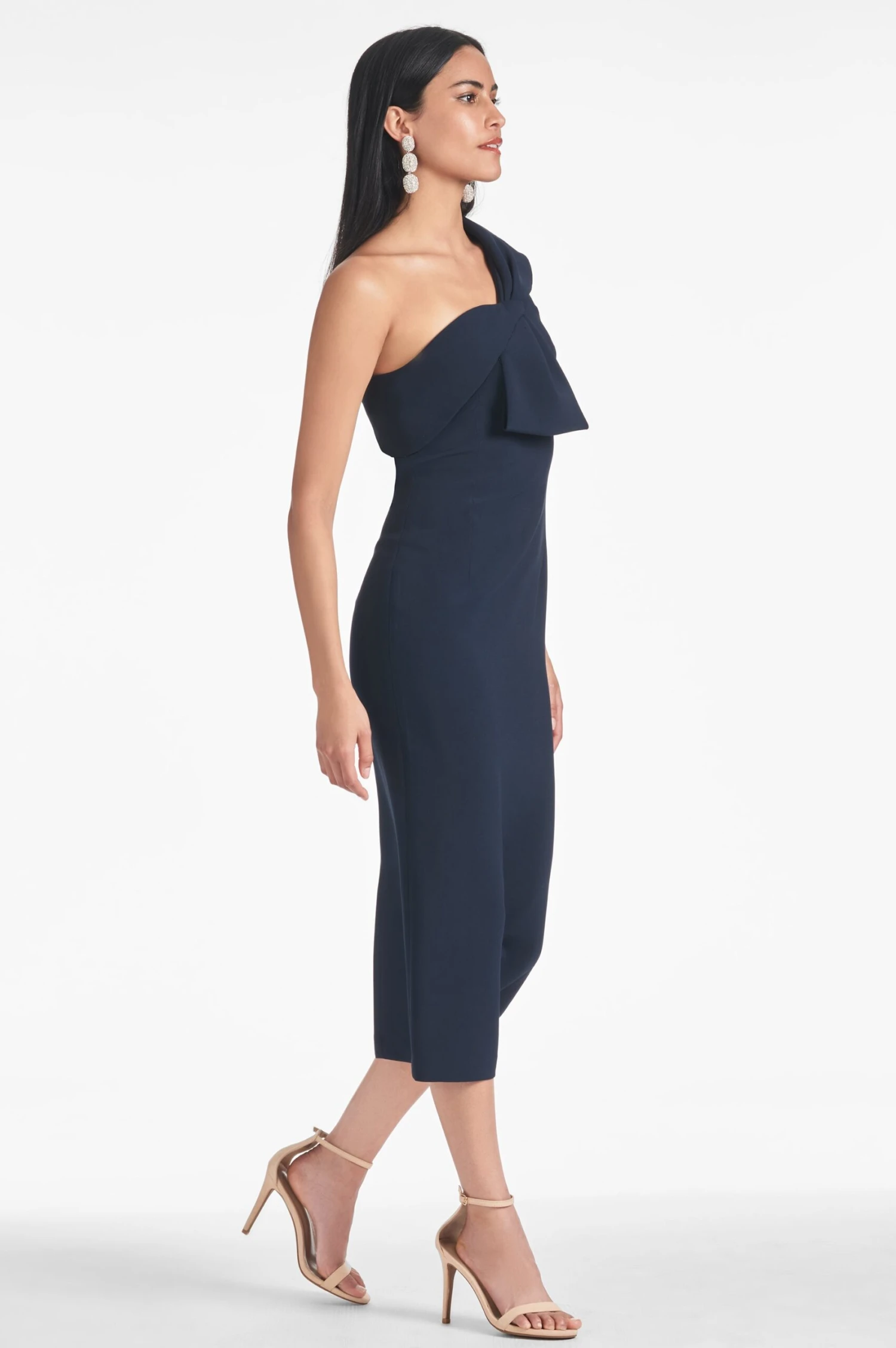 Our magical 4-way stretch crepe occasion dress hits below the knee, hugging in all the right spots. We are in love with this fabric because it supports you, holding you in just enough while still moving with you, while dressed up with one of our signature bow details at the shoulder.