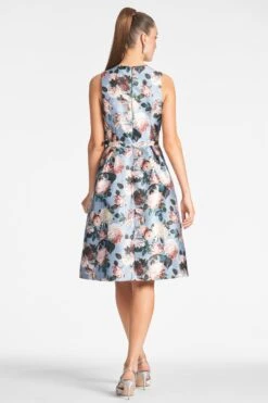 Introducing the Tish Dress, perfect for day-to-night or wedding events. Crafted from a beautiful mikado, this tea-length dress in our ice blue garden print offers modern detailing and timeless elegance for the sophisticated lady. Add a graceful touch to any special occasion.