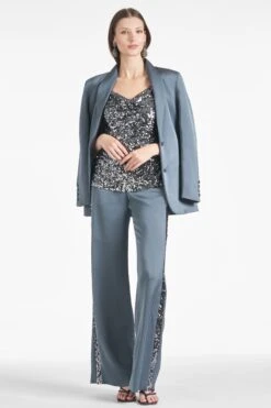 Our reimagined Alli is the ideal evening pant. An easy, chic wide-leg trouser shape is featured in our satin crepe for an amazing drape. The flat front pant has concealed elastic at the back for a more comfortable fit. Perfect back to your favorite “date-night” tops or paired back to our Reid Blouse.Â