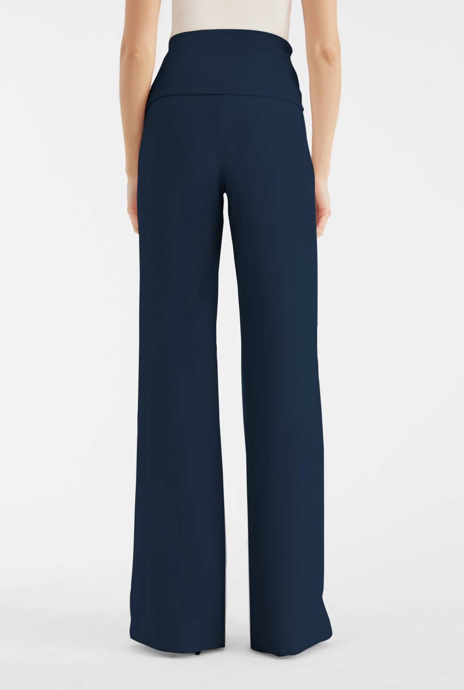 The Whitley pant is featured in our luxe lightweight, stretch crepe, and it is the ideal occasion pant for any season. The magnificent drape of the crepe creates a dramatic effect when paired with the wide-legged silhouette. At the waist a faux full sash with stitched down belt both flatters and conceals. A side zip closure allows for a clean finish to these spectacular pants.